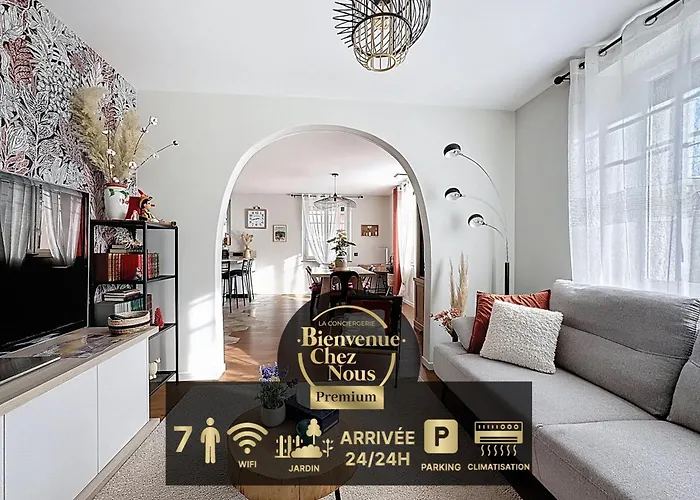 Apartament Magnifique Maison Haut De Gamme 7 Couchages oferuje miejsce do pobytu dziennego i pełnowymiarową kuchnię, a także takie udogodnienia jak klimatyzacja. Dla dodatkowej wygody w tym apartamencie dostępna jest oddzielna toaleta i prysznic.
